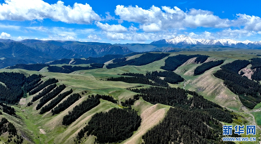 盛夏時節(jié),祁連山國家公園甘肅省張掖市肅南裕固族自治縣康樂鎮(zhèn)段,湛藍的天空飄著朵朵白云,映襯著巍峨的雪峰和碧綠的大地,牛羊在青草中浮動,像一把珍珠撒在了綠色的絨毛毯上,勾勒出一幅天然秀麗的生態(tài)畫卷。新華網(wǎng)發(fā)(王將 攝)
