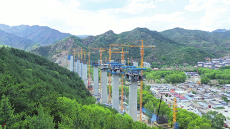 建設(shè)中的雄忻高鐵五臺(tái)山段。