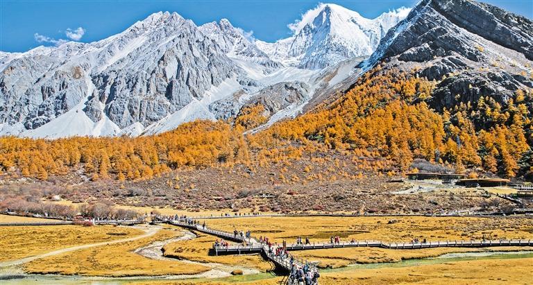 10月31日,游客在四川省甘孜藏族自治州的稻城亞丁景區(qū)游覽。新華社記者 儲加音攝