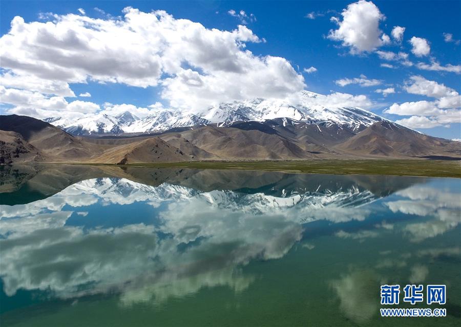 慕士塔格峰倒映在卡拉庫里湖里(6月7日攝)。6月的帕米爾高原風光旖旎,吸引國內(nèi)外大量游客前來領略它的神韻。 新華社記者 趙戈 攝