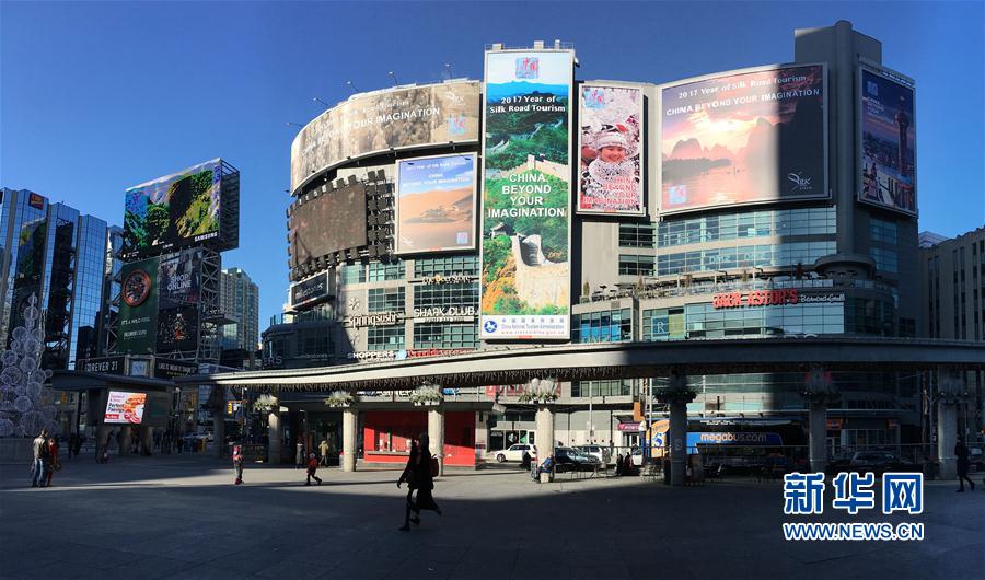 這是1月1日在加拿大多倫多市中心的鄧達(dá)斯廣場(chǎng)拍攝的“美麗中國(guó)——2017絲綢之路旅游年”主題宣傳廣告牌。從2016年12月26日起,由中國(guó)國(guó)家旅游局推出、以“美麗中國(guó)——2017絲綢之路旅游年”為主題的大型旅游宣傳廣告在加拿大多倫多市中心鄧達(dá)斯廣場(chǎng)亮相,向人們展示中國(guó)美麗而豐富的旅游資源。整個(gè)活動(dòng)將持續(xù)5周。新華社發(fā)(鄒崢攝) |