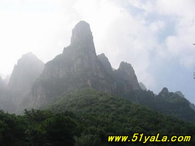 五老峰史稱東華山,歷史上為北方道教名山,海拔1809.3米,奇峰險(xiǎn)峻,需攀鏈而上,屬丹霞地貌。這里是層層峰巒,森林古木,各種生物覆蓋著整個山野?;t草綠,山光水色,風(fēng)光旖旎非凡,故有“北有五臺觀庫存宇,南在五老看風(fēng)光”之說。游人往縣城西南遠(yuǎn)眺,見有東錦屏峰、西錦屏峰、太乙坪峰、棋盤山峰四山峰仙態(tài)神姿,隱現(xiàn)于云煙蒼茫之中,將高1809.3米的玉柱峰環(huán)抱其中,“有偃蹇傴樓之伏”,猶如五位老人抱拳作揖迎貴賓之勢,故名五老峰。