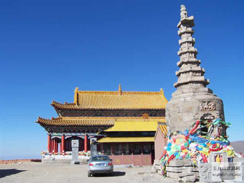 五臺山中臺翠巖峰,又名平頂山,海拔2894米,居?xùn)|、西、南、北四臺的中心,也是四臺的發(fā)脈之祖,臺頂面積也最大。《清涼山志》云:“巔巒雄曠,翠靄浮空”。其山勢酷似一頭挺立的雄獅。臺頂寺院名作演教寺,內(nèi)供孺童文殊。