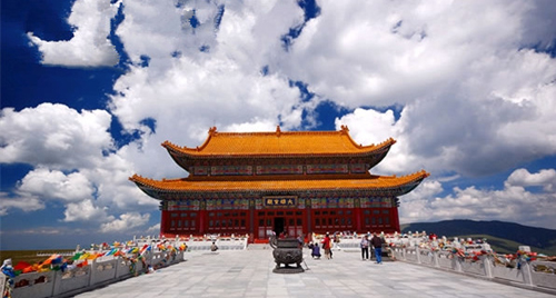 夏日的中臺頂青綠如黛,碧如翡翠,猶似一堆巨大的祖母綠。游人走累了,躺在細(xì)若絲絨、猶若天然地毯的青草上,面向天空,感覺天藍(lán)藍(lán)的,云柔柔的,風(fēng)輕輕的,特別清爽。飄動著的白云,千變?nèi)f化地追蹤著人們的足跡,還癡癡地纏繞在身前身后,讓人如置身仙境,美妙異常。