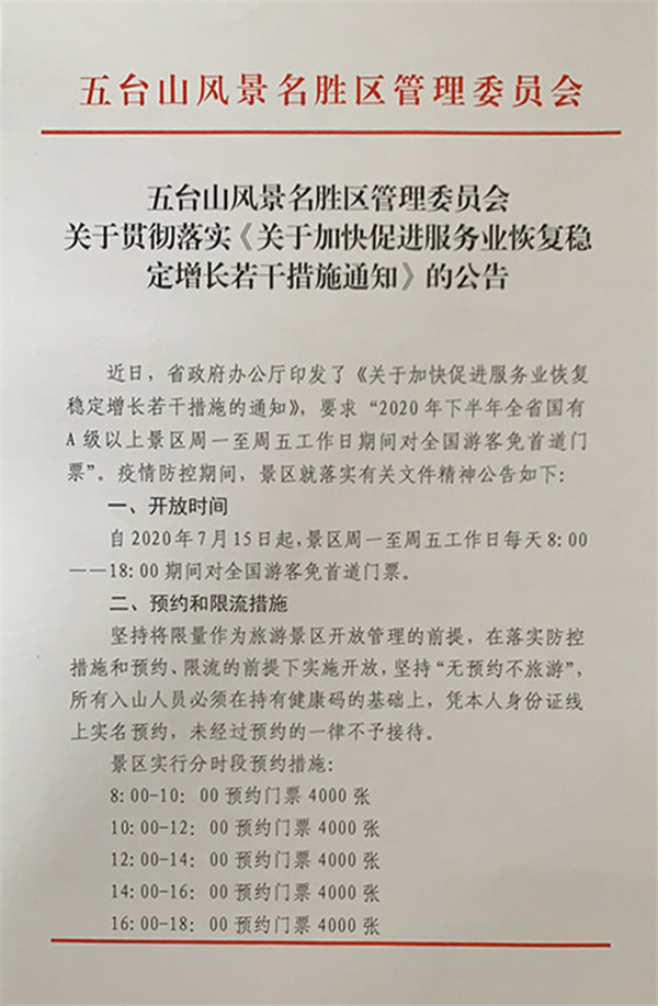 五臺山風(fēng)景名勝區(qū)管理委員會關(guān)于貫徹落實《關(guān)于加快促進(jìn)服務(wù)業(yè)恢復(fù)穩(wěn)定增長若干措施通知》的公告