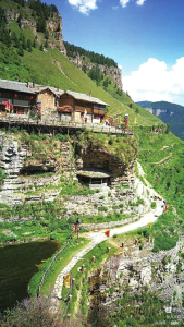 當(dāng)夕陽西下,前往蘆芽山深處的懸空村。當(dāng)看到建在海拔2000多米懸崖之上的古老村莊時,心中不禁感嘆古人的智慧與勇氣。村里的房屋錯落有致地鑲嵌在懸崖邊,用一根根木樁支撐著,看上去搖搖欲墜,卻又穩(wěn)穩(wěn)當(dāng)當(dāng)?shù)卮A⒅?。每一塊石頭,每一片瓦片都在訴說著歷史的厚度。