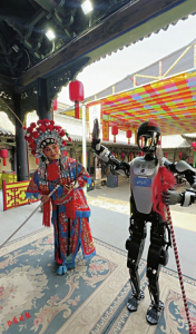 “山河+”人形機(jī)器人記者還與祁縣非遺傳承人上演了一場祁太秧歌,為游客助興。
