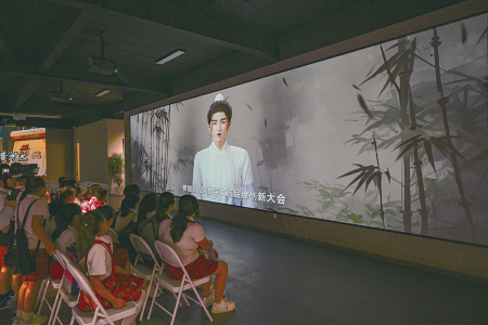 王維“數(shù)字人”正在與研學(xué)的小朋友進(jìn)行互動(dòng)。吳遵民攝