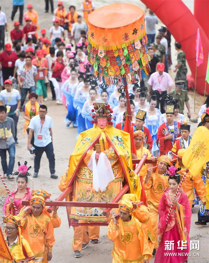 6月13日,福建省寧德市古田縣舉行臨水夫人祭祀大典,為海峽論壇的重要組成部分——陳靖姑文化節(jié)拉開(kāi)序幕。本屆文化節(jié)以“臨水緣·兩岸情”為主題,港澳臺(tái)及內(nèi)地近千名信眾共同參加。作為國(guó)家級(jí)非物質(zhì)文化遺產(chǎn)“陳靖姑信俗文化”的發(fā)祥地,福建省古田縣充分以陳靖姑信俗文化為紐帶,通過(guò)不斷加深對(duì)外文化交流與合作,對(duì)推動(dòng)兩岸關(guān)系和平發(fā)展、我國(guó)與海絲沿線(xiàn)國(guó)家民間交流起到了積極作用。陳靖姑被譽(yù)為“婦女兒童保護(hù)神”,在世界各地信眾已逾億人。新華社記者 宋為偉 攝