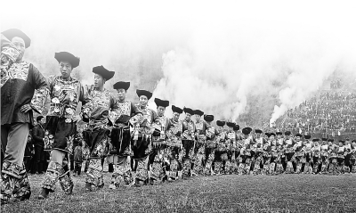 苗族趕秋節(jié)時(shí),人們?cè)凇扒飯?chǎng)”表演遷徙舞。中國農(nóng)業(yè)博物館提供