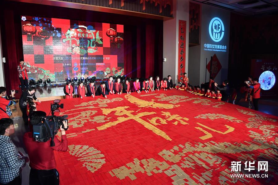 1月11日,“尋找曾經(jīng)的年味兒”全國大型公益行動在北京中國婦女兒童博物館啟動,通過發(fā)放年味兒畫冊、舉辦年味兒趣味活動,弘揚傳統(tǒng)文化,同時為貧困家庭、醫(yī)護工作者送去問候與關(guān)愛?;顒又校山?萬個紅包拼鋪而成的64平方米“最大紅包拼圖”載入吉尼斯世界紀錄。春節(jié)期間,北京、濟南、石家莊、鄭州、哈爾濱等五座城市都將開展尋找年味兒的相關(guān)活動。新華社記者 李鑫 攝