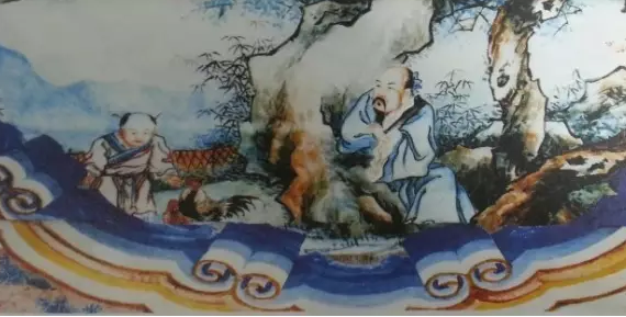 祝雞翁,河南洛陽(yáng)人也,養(yǎng)雞百年,有雞上千,體姿健美,啼鳴洪亮,肉美蛋多,個(gè)個(gè)有名,如拖錦碎沙、戴紅拍翠等,且一呼即應(yīng),居然成為北京頤和園長(zhǎng)廊彩畫故事之二十九。