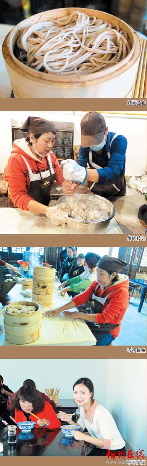 這家店的女主人叫康秀蘭,今年51歲,忻府區(qū)豆羅鎮(zhèn)韓溝村人。秀蘭從小勤快,幫助母親洗鍋?zhàn)鲲?,學(xué)搓魚(yú)魚(yú)。18歲時(shí)便遠(yuǎn)近聞名,掌握了搓魚(yú)魚(yú)的好手藝。在今年忻州古城招商比賽入圍的6家店鋪中,秀蘭的小店脫穎而出,奪得第一名,拿到了開(kāi)門(mén)店的資格。眼下夫妻二人經(jīng)營(yíng)著兩間大的門(mén)臉兒,小籠屜蒸魚(yú)魚(yú),臊子有鮮肉蘑菇、西紅柿和老酸菜湯,食客們可根據(jù)自己的喜好選擇。他們兩口子既當(dāng)老板又是廚師。在食客多時(shí)臨時(shí)雇幾個(gè)幫工,小生意做得風(fēng)生水起。康秀蘭告訴筆者,自開(kāi)張以來(lái)食客不斷增加,國(guó)慶節(jié)假期期間一天的最高銷(xiāo)售紀(jì)錄是賣(mài)出200多籠紅面魚(yú)魚(yú)。