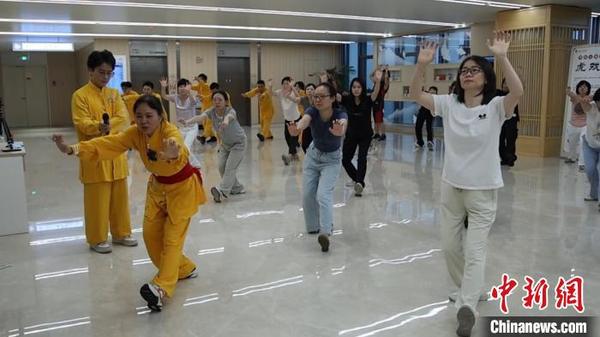 在現(xiàn)場(chǎng),首期授課老師、浙江省立同德醫(yī)中醫(yī)內(nèi)科主任周天梅化身“私教”,一個(gè)個(gè)動(dòng)作分步分解教學(xué),“‘虎戲’主要?jiǎng)幼鞯囊I(lǐng)是虎撲和虎舉,通過(guò)腰部的運(yùn)動(dòng),強(qiáng)壯腰腎功能,通過(guò)長(zhǎng)期的運(yùn)動(dòng),可緩解長(zhǎng)期工作導(dǎo)致的頸椎不適等癥狀,調(diào)節(jié)身心。”