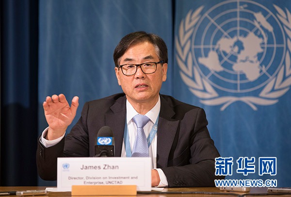 1月18日,在瑞士日內瓦,聯(lián)合國貿易和發(fā)展會議(貿發(fā)會議)投資和企業(yè)司司長詹曉寧出席報告發(fā)布會。 新華社記者 徐金泉 攝
