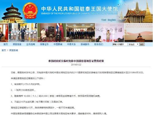 日前,泰國政府發(fā)布公告,對(duì)包括中國大陸和中國臺(tái)灣地區(qū)在內(nèi)的21個(gè)國家和地區(qū)的游客實(shí)行的免除落地簽證費(fèi)措施延長至2019年4月30日。