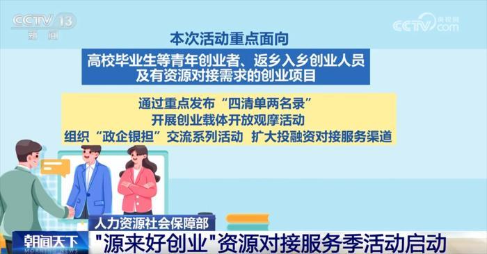 央視網(wǎng)消息:記者從人力資源社會(huì)保障部了解到,“源來(lái)好創(chuàng)業(yè)”資源對(duì)接服務(wù)季活動(dòng)定于7月至9月在全國(guó)各地同步開展,通過搭建平臺(tái)、拓展渠道、集聚資源促進(jìn)高質(zhì)量創(chuàng)業(yè)。