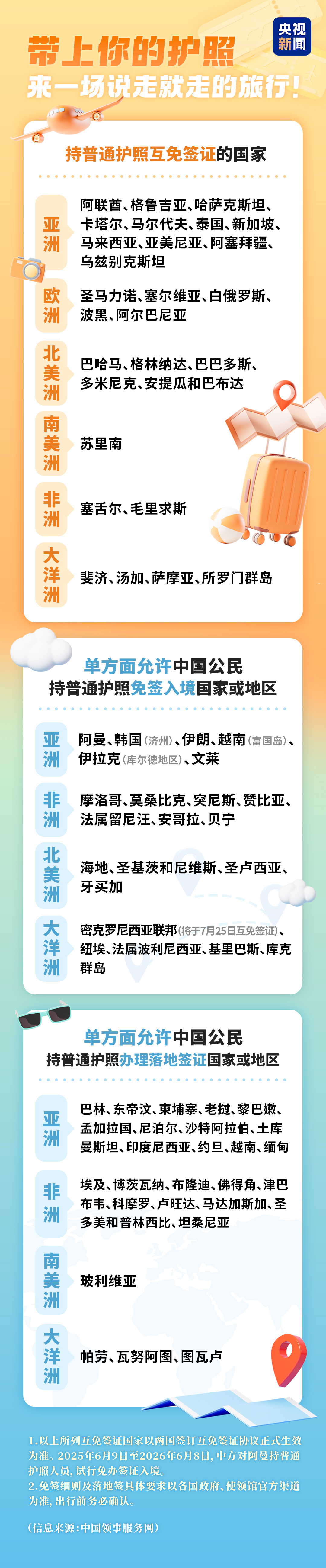 帶上護照,還有哪些國家可以“說走就走”?一圖了解↓