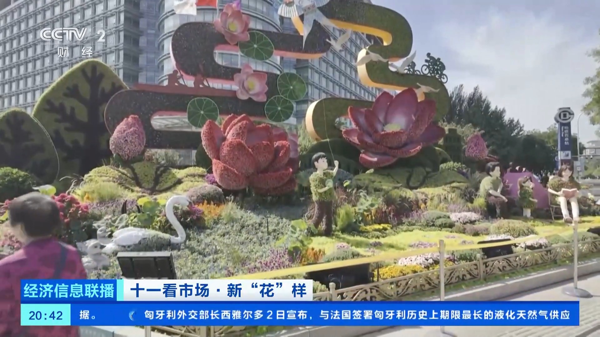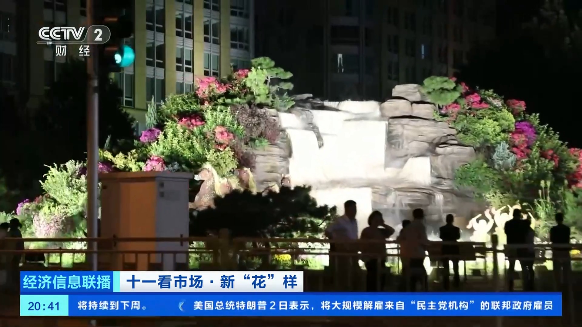 總臺(tái)央視記者 王聞聰:今年北京天安門廣場(chǎng)中心花壇的大花籃和長(zhǎng)安街沿線的10組立體花壇,都在國(guó)慶中秋假期增添了夜間照明設(shè)施,讓夜晚的花壇更加引人注目。北京東單東南角的“黃河贊歌”立體花壇,也被稱為是“會(huì)唱歌的花壇”。在花壇上不僅能看到微觀的壺口瀑布、奔騰的駿馬、載歌載舞的人群,還有水霧、音樂等聲光電技術(shù),更加逼真地還原了黃河之水天上來的氣勢(shì)。晚上八點(diǎn),這里仍有大量游客前來拍照打卡。