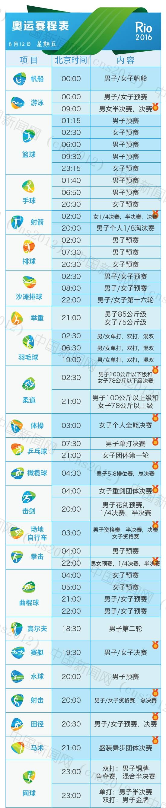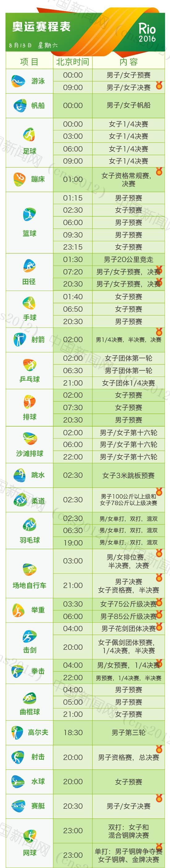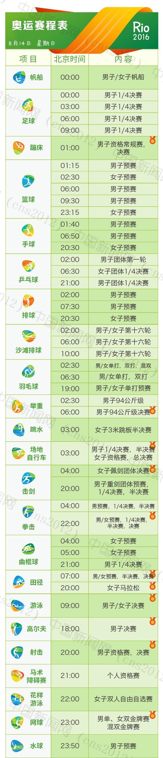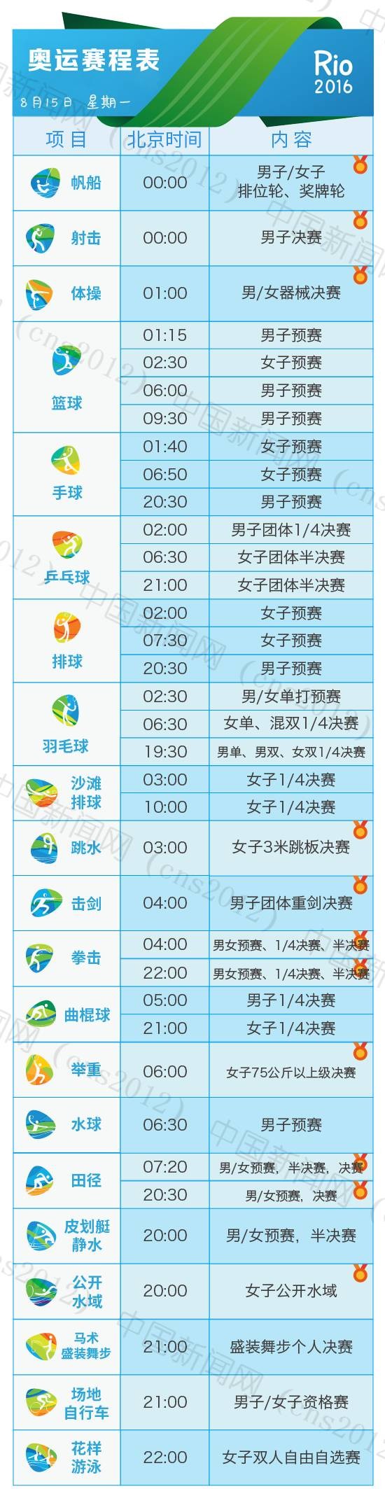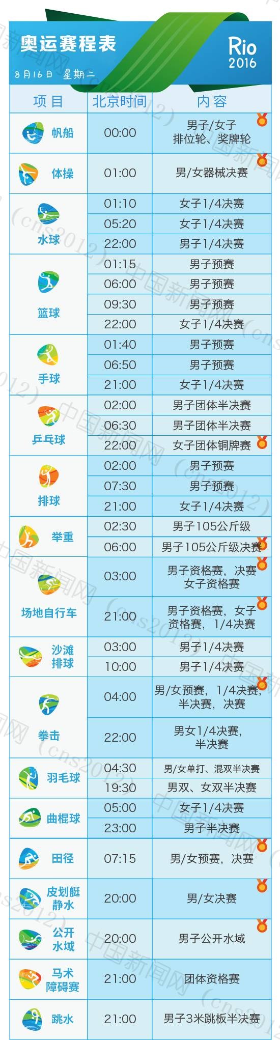 里約奧運會完整賽程表