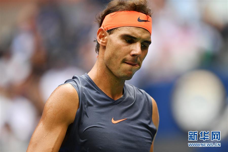 9月7日,納達(dá)爾在比賽中。 當(dāng)日,在2018美國網(wǎng)球公開賽男單半決賽中,西班牙選手納達(dá)爾在大比分0比2落后時(shí)因傷退賽,阿根廷選手德爾波特羅晉級決賽。 新華社記者劉杰攝