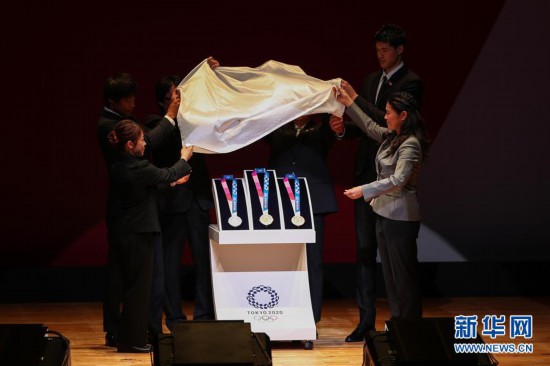 7月24日,在2020年東京奧運(yùn)會(huì)倒計(jì)時(shí)一周年儀式現(xiàn)場,嘉賓揭曉東京奧運(yùn)會(huì)獎(jiǎng)牌。 當(dāng)日,在2020年東京奧運(yùn)會(huì)倒計(jì)時(shí)一周年之際,東京奧組委公開獎(jiǎng)牌設(shè)計(jì)。 新華社記者杜瀟逸攝