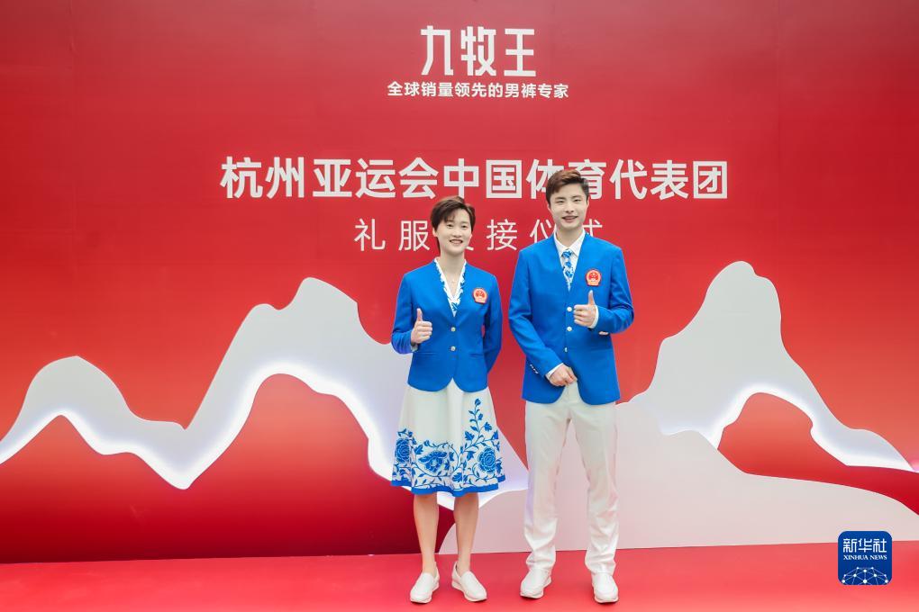 當(dāng)日,杭州亞運會中國體育代表團(tuán)開幕式禮服“星耀”交接儀式在北京舉行。