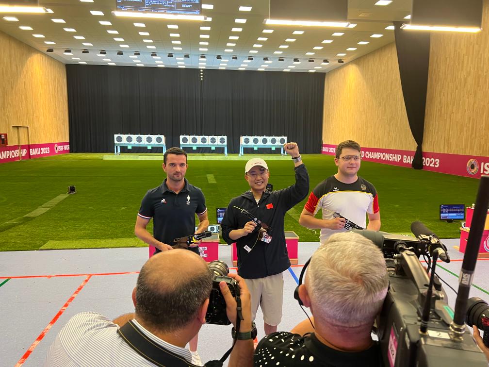 該項目比賽中,中國隊老將新人都有出色發(fā)揮。首次參加國際比賽的王鑫杰資格賽打出588環(huán)排名第一,與位居次席的李越宏攜手晉級決賽。他們兩人與劉楊攀組成的中國隊團(tuán)體成績1756環(huán),追平了世界紀(jì)錄,足足領(lǐng)先亞軍德國隊16環(huán)。