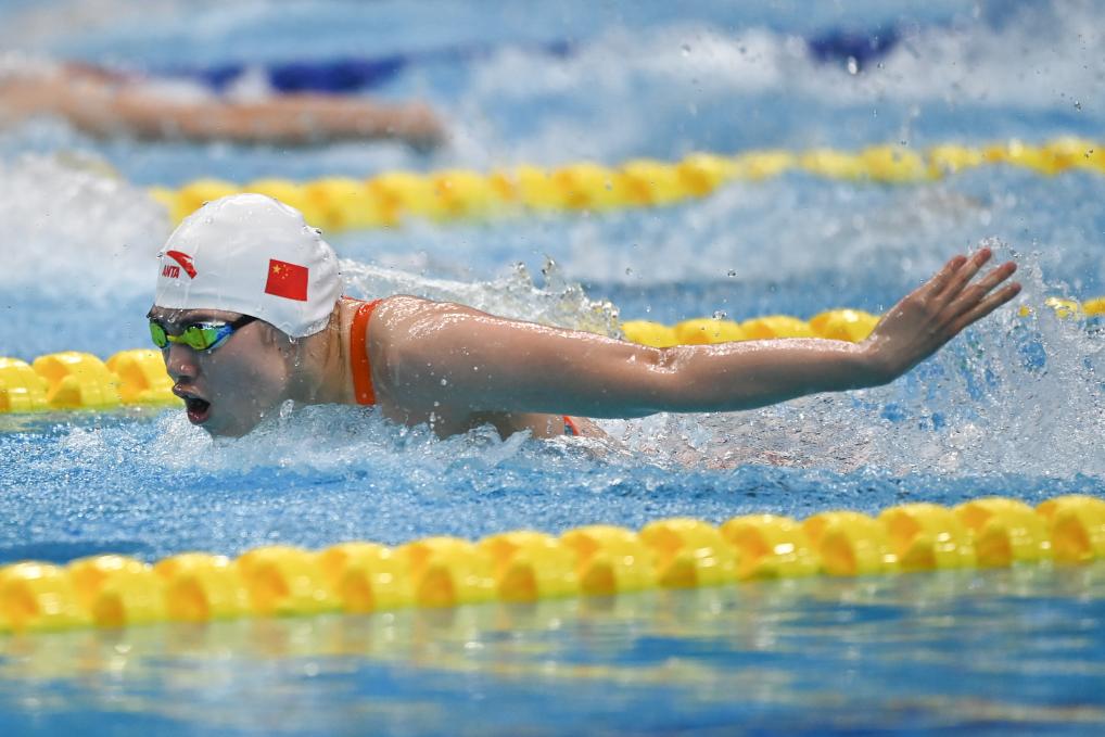 張雨霏在“韻味杭州”2023年全國游泳冠軍賽女子100米蝶泳決賽中(2023年5月4日攝)。新華社記者黃宗治攝