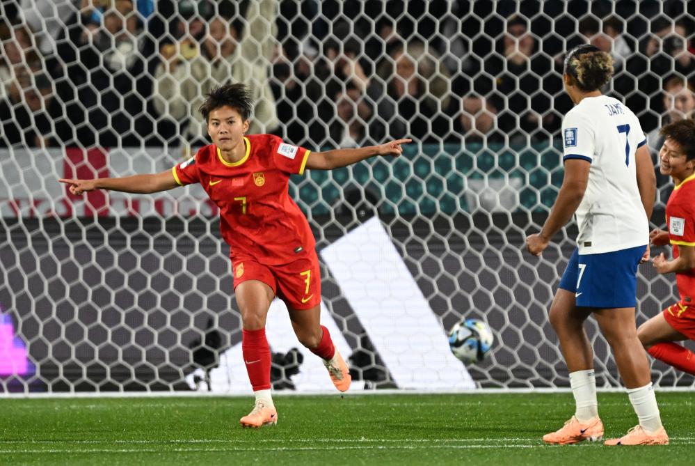 8月1日,中國隊球員王霜(左)慶祝罰中點球。當日,在澳大利亞阿德萊德舉行的2023年國際足聯(lián)女足世界杯小組賽D組比賽中,中國隊對陣英格蘭隊。新華社記者 毛思倩 攝