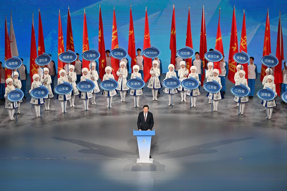 2月27日,第十四屆全國(guó)冬季運(yùn)動(dòng)會(huì)組委會(huì)主任、國(guó)家體育總局局長(zhǎng)高志丹致閉幕辭。新華社記者 胥冰潔 攝
