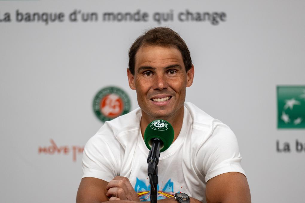 5月27日,納達(dá)爾在比賽后出席新聞發(fā)布會。新華社記者 孟鼎博 攝