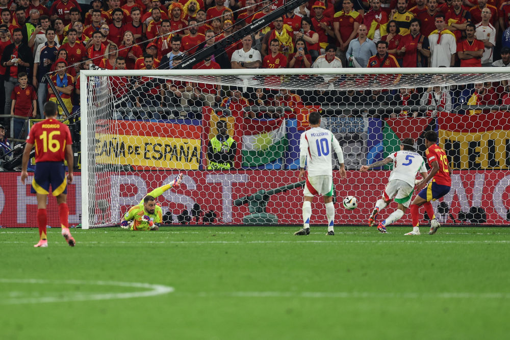下半場西班牙隊延續(xù)攻勢,威廉姆斯繼續(xù)成為球隊爆點,與他對位的意大利隊邊后衛(wèi)迪洛倫佐苦不堪言。第55分鐘,威廉姆斯邊路傳中,莫拉塔前點頭球攻門被唐納魯馬單掌撲出,但意大利隊后衛(wèi)卡拉菲奧里避閃不及自擺烏龍,“斗牛士”軍團(tuán)1:0領(lǐng)先。