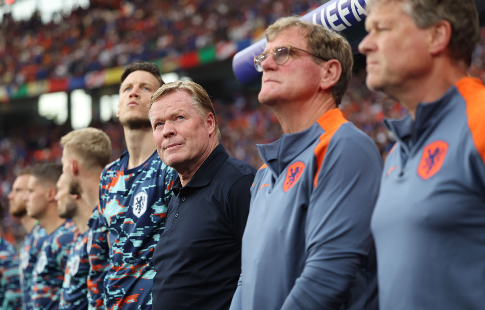 6月21日,荷蘭隊(duì)主教練羅納德·科曼(中)在比賽前。當(dāng)日,在德國萊比錫進(jìn)行的2024歐洲足球錦標(biāo)賽D組第二輪比賽中,法國隊(duì)0比0戰(zhàn)平荷蘭隊(duì)。新華社記者 白雪飛 攝