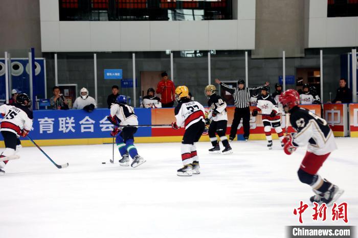 圖為第四屆中國(guó)青少年冰球聯(lián)賽全國(guó)總決賽比賽現(xiàn)場(chǎng)。張?zhí)砀?攝