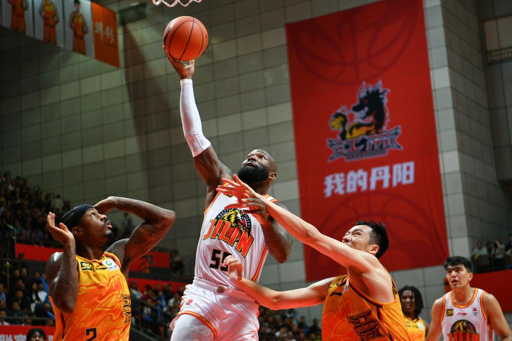 10月20日,吉林隊球員瓊斯(上)在比賽中投籃。新華社發(fā)(史康攝) 籃板球方面,場均前7名被外援占據(jù),天津隊的大前鋒大衛(wèi)·詹姆斯以場均17個籃板笑傲群雄。南京隊的利夫和浙江隊的巴斯均以12.5個籃板并列第二位。吉林隊瓊斯以場均11.8個籃板排名第五,是場均籃板球前22位中唯一一名后衛(wèi);江蘇隊后衛(wèi)史密斯以場均7.8個籃板排在第23位。