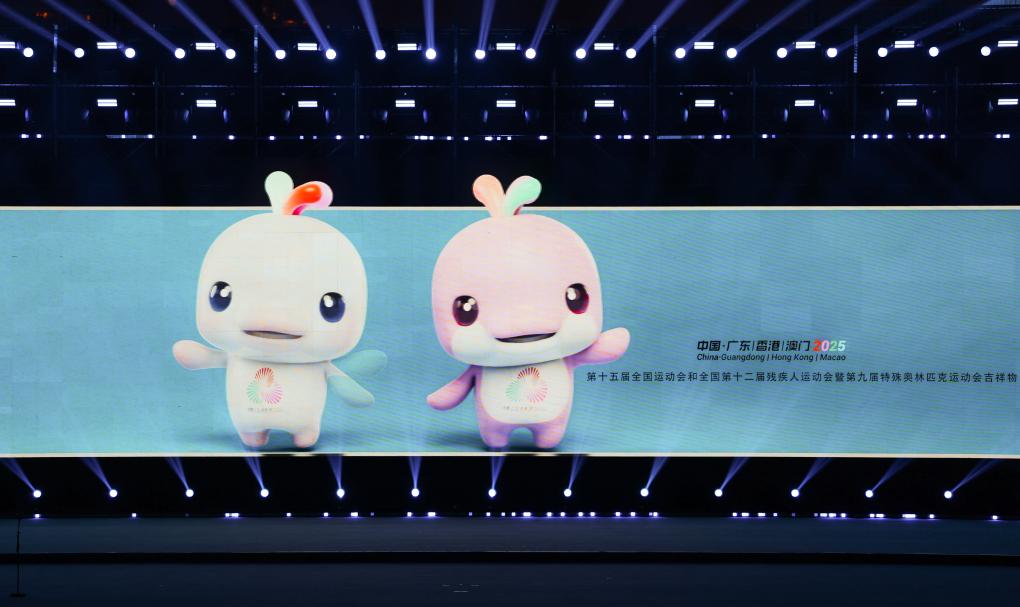第二天晚上,在第十五屆全國(guó)運(yùn)動(dòng)會(huì)和全國(guó)第十二屆殘疾人運(yùn)動(dòng)會(huì)暨第九屆特殊奧林匹克運(yùn)動(dòng)會(huì)倒計(jì)時(shí)一周年啟動(dòng)儀式的大屏幕上,當(dāng)兩只海豚翩翩起舞,從海底游向海面,一躍而出化成兩個(gè)“萌寵”,“喜洋洋”與“樂融融”驚艷亮相,引來一片贊嘆。