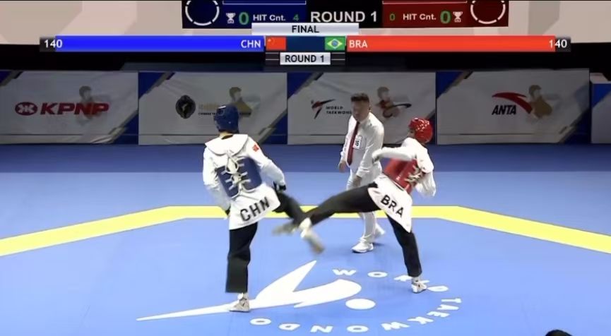 決賽首局比賽,中國隊(duì)肖樹楠以一個腹部踢擊得分加對手出界拉開分差,占據(jù)優(yōu)勢后中國隊(duì)持續(xù)迎擊,以能量值130:70獲勝。第二局中國隊(duì)開場防守松懈,被扣掉40分(能量值),盡管后程中國隊(duì)加強(qiáng)攻勢,還是以能量值65:75不敵對手。在決勝局中,巴西隊(duì)兩記直拳打開局面,能量值占優(yōu),此后雖然巴西隊(duì)兩次被判消極進(jìn)攻,但中國隊(duì)未能把握住機(jī)會,最終以能量值110:115輸?shù)舻谌?,大比?:2告負(fù)。