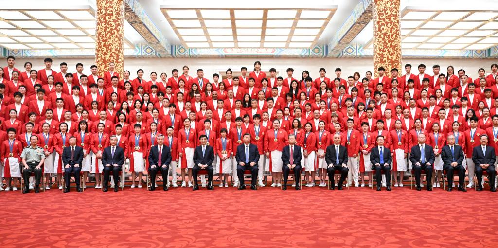 8月20日,中共中央總書(shū)記、國(guó)家主席、中央軍委主席習(xí)近平在人民大會(huì)堂接見(jiàn)第33屆夏季奧林匹克運(yùn)動(dòng)會(huì)中國(guó)體育代表團(tuán)全體成員并發(fā)表重要講話(huà)。他表示,中國(guó)體育代表團(tuán)的優(yōu)異成績(jī),既是我國(guó)體育事業(yè)發(fā)展進(jìn)步的集中體現(xiàn),也是中國(guó)式現(xiàn)代化建設(shè)成就的一個(gè)縮影,充分彰顯了新時(shí)代中國(guó)力量。