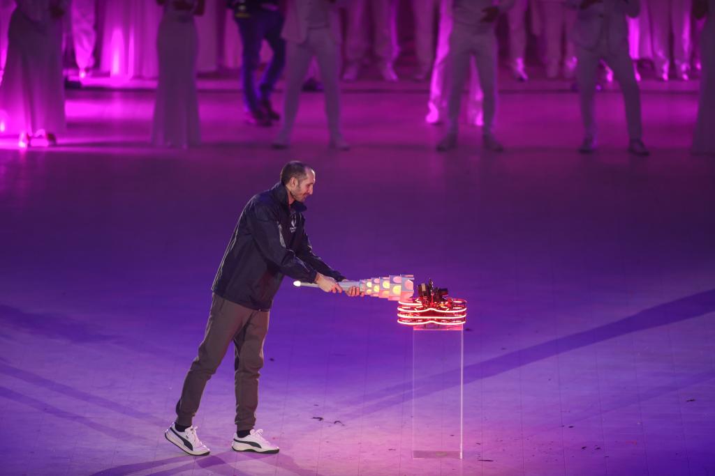 意大利體育和青年部長安德烈亞·阿博迪出席開幕式并宣布運(yùn)動會開幕。在充滿風(fēng)情的歌舞、魔術(shù)和雜技表演后,意大利足球名宿基耶利尼手持火炬,將一臺無人機(jī)“激活”。隨后,發(fā)光的無人機(jī)從奧林匹克體育館飛向都靈王宮,將矗立在王宮前的主火炬點(diǎn)亮。
