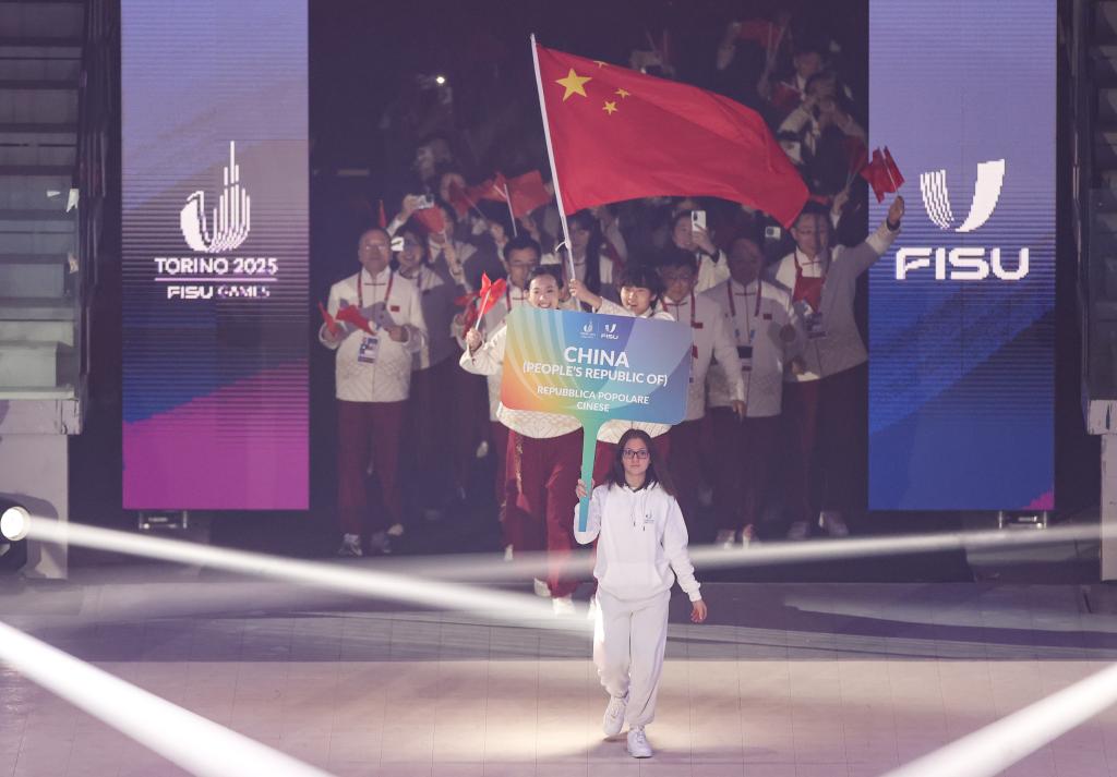 賽會開幕式于當(dāng)晚在都靈奧林匹克體育館舉行。入場儀式上,來自北京體育大學(xué)的女子冰壺運(yùn)動員裴君杭和北方工業(yè)大學(xué)的男子高山滑雪運(yùn)動員劉祥琪共同擔(dān)任中國代表團(tuán)旗手。