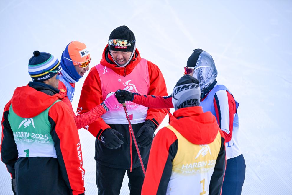 對中國隊而言,最后一枚男子接力賽金牌可謂含金量十足。當日本選手一改先前比賽風格,在開賽后就強勢領(lǐng)滑時,新老結(jié)合的中國隊并未慌亂,一直緊跟在對手身后,最終由最后一棒的老將王強超越日本名將山下陽暉,為中國越野滑雪隊的亞冬會之旅畫上完美句號。