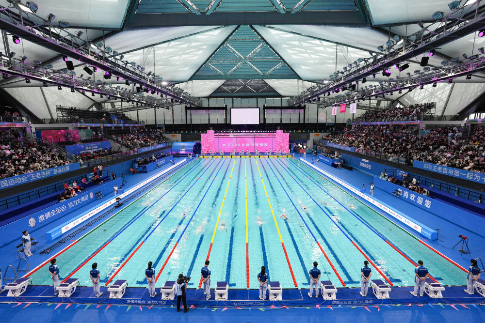 11月10日,參賽選手在女子400米自由泳預(yù)賽中。當(dāng)日,第十五屆全國運(yùn)動會游泳項目在深圳拉開帷幕。新華社記者 夏一方 攝