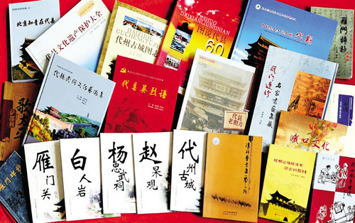 由程培甫、馮祥主編的《雁門(mén)碑抄》收錄了唐代以來(lái)鐫刻在代縣各地的古碑碑文98篇,詔、敕、封誥19篇,從不同的側(cè)面反映和記錄了代縣悠久的歷史和博大的文化內(nèi)涵,是挖掘、整理、弘揚(yáng)雁門(mén)文化極其珍貴的歷史資料。由王文藻主編的《雁門(mén)詩(shī)抄》,分“人物篇”和“形勝篇”兩本?!叭宋锲眳R集了有詩(shī)詠代的代州人,或在代地作過(guò)官,或因事涉足過(guò)代地的83位歷史人物和詠贊他們的230首詩(shī)詞,意在讓今人了解古人的業(yè)績(jī)政聲,學(xué)習(xí)古人的品格情操。“形勝篇”則收集了歷代仕宦、詩(shī)人、騷客、雅士游覽代州時(shí)寫(xiě)下的300多首詠贊代州壯美山河、名樓勝跡的古代詩(shī)詞,意在讓今人更好地挖掘、了解、弘揚(yáng)博大精深的雁門(mén)文化,推動(dòng)代縣旅游事業(yè)的發(fā)展,促進(jìn)縣域經(jīng)濟(jì)的振興。2008年由山西人民出版社出版的《代縣老照片》,收集了代縣從清朝末年到上世紀(jì)50年代拍攝的360多幅珍貴的歷史照片,分為古城遺跡、雁門(mén)雄關(guān)、教育篇章、代商風(fēng)采、社會(huì)百態(tài)、名人佚事、革命史詩(shī)等七個(gè)篇章,結(jié)為一集。翻閱這些泛黃的老照片,讀者可以欣賞文化名城宏偉壯觀的古老建筑,瞻仰歷史名人的風(fēng)姿俊采,領(lǐng)略代州驕子的雄才大略,感受有識(shí)之士的宏圖大志,體會(huì)莘莘學(xué)子的凌云壯志……透過(guò)這些老照片,我們既能追尋歷史,更可展望未來(lái)。2009年出版的《圖說(shuō)代縣60年》,以編年體的形式,按照時(shí)間順序,選取每年在代縣大地上發(fā)生的重大事件、重要人物,或是能真實(shí)反映當(dāng)時(shí)當(dāng)?shù)鼐哂袝r(shí)代特色、風(fēng)土人情的歷史照片780多幅,配以簡(jiǎn)明扼要的文字說(shuō)明,形象生動(dòng)地再現(xiàn)了新中國(guó)成立60年來(lái)代縣發(fā)展變化的歷史進(jìn)程,是新中國(guó)60年發(fā)展變化的一個(gè)縮影。它所包含的信息和所起到的作用會(huì)超越時(shí)空,成為后人認(rèn)識(shí)歷史演變的生動(dòng)教材。同年出版的《代縣古城圖志》則以圖文并茂的形式,向讀者介紹了代州古城的歷史沿革、代州古城的城垣、街衢、商貿(mào)、衙廨、教育、寺廟、風(fēng)俗風(fēng)物、歷史人物等內(nèi)容,展示了古代州悠久的歷史和深厚的文化底蘊(yùn),為人們提供了一個(gè)了解代州古城的窗口。