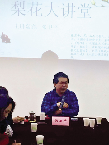 農(nóng)家出身的張衛(wèi)平來自代縣基層,現(xiàn)為中國作家協(xié)會會員,著有長篇小說《給我一支槍》、《絕唱》,長篇散文《走馬雁門》,短篇小說集《童年的小搖車》、中短篇小說集《野魂》,電影《給我一支槍》、《浴血雁門關(guān)》、《血戰(zhàn)午城》、《人祖山保衛(wèi)戰(zhàn)》,電視連續(xù)劇《大宗師》。在這次“梨花大講堂”文學(xué)講座上,張衛(wèi)平從文學(xué)的載體切入,縱論了從口頭文學(xué)到紙質(zhì)文學(xué)、影視文學(xué)、網(wǎng)絡(luò)文學(xué)的演變發(fā)展;結(jié)合自己的創(chuàng)作感悟,站在技術(shù)層面,從語言、人物、情感、結(jié)構(gòu)、思想五個高度闡述了對文學(xué)的判斷;站在藝術(shù)的境界,分情感、歷史、精神三大板塊,講解了作品提升的高度。該市偵探小說作家狄保壽感到張衛(wèi)平的講解切中了文學(xué)創(chuàng)作的要害,讓大家明白了如何提高文學(xué)創(chuàng)作水平的道理。青年文學(xué)愛好者李詠梅表示要按照張衛(wèi)平老師的講授,不斷努力,寫出更好的文學(xué)作品。該市文聯(lián)主席鄭建芳告訴記者:“梨花大講堂要形成常態(tài)化,為提升全市文學(xué)創(chuàng)作隊伍整體素質(zhì)發(fā)力?!保ㄌA紅)