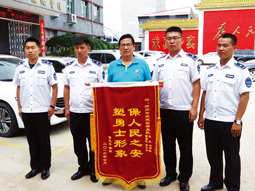 “謝謝你們的幫助,讓我被搶的財物失而復(fù)得,謝謝、謝謝……”7月13日下午,家住我市城區(qū)學(xué)府街的謝先生連聲感謝,將一面寫有“保人民之安塑勇士形象”字樣的錦旗送到了市城建支隊協(xié)管大隊城管隊員張志、楊勇江、劉宇鑫、李仁杰手中,表達(dá)他對市城建支隊城管隊員們見義勇為、熱心為民的感激之情。