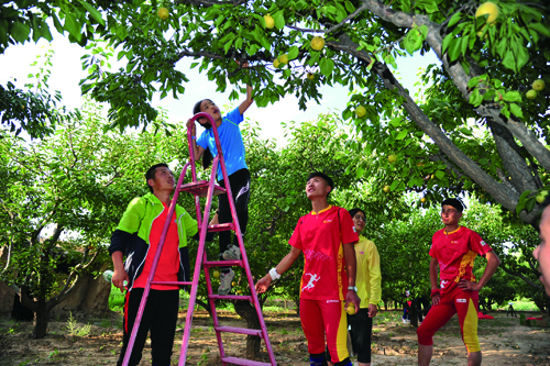 運(yùn)動健兒杏園采摘白水杏