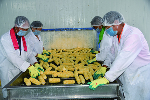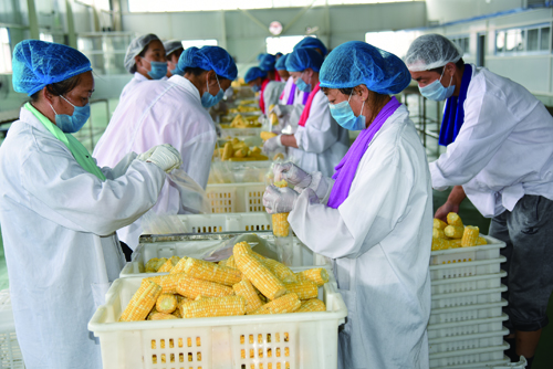 代縣金九州公司加工生產(chǎn)水果玉米熱火朝天