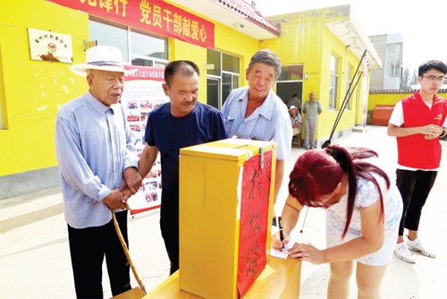 8月7日,“忻州愛心公益行動”團隊一行一百多人,穿著統一的紅馬甲,一大早就出發(fā),驅車來到了距忻州市區(qū)十幾公里的蘭村鄉(xiāng)晏村。剛進村委會大院,就看到了等候著的宿香玲一家以及鄉(xiāng)政府、村委會的工作人員?!瓣P愛貧困生,共筑大學夢”,紅色醒目的條幅傳遞出了大家此行的目的和心聲。此次,“忻州愛心公益行動”團隊不僅為貧困學生宿香玲一家?guī)砹松钣闷泛腿沼闷?,而且送來了資助宿香玲完成大學學業(yè)的善款3萬余元。當天晏村村委會黨員干部們也主動牽頭,開展“兩學一做”先鋒行、黨員干部獻愛心活動,現場為宿香玲籌得善款930元。新希望學校代表也為宿香玲一家送來了米面油等生活用品以及1000元現金。