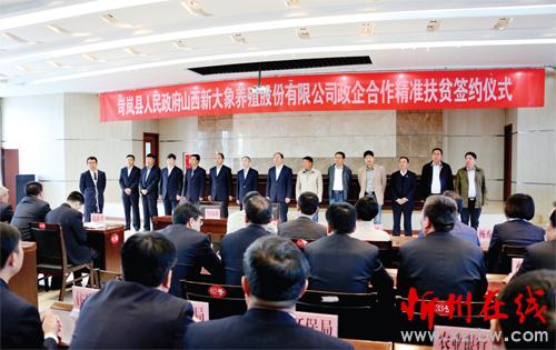 圖為岢嵐與山西新大象養(yǎng)殖股份有限公司政企合作精準扶貧簽約儀式現(xiàn)場。(尹艷 攝)